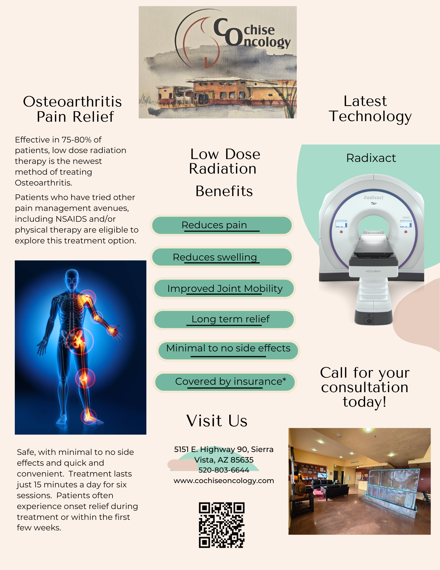 As always, your Cochise Oncology team offers the best technology to make treatment more effective and comfortable. We are proud to be the first provider to bring Radixact® to Southern Arizona, making radiation therapy more effective and with fewer side effects than ever before. Talk to your team to learn more about radiation therapy with Radixact®.